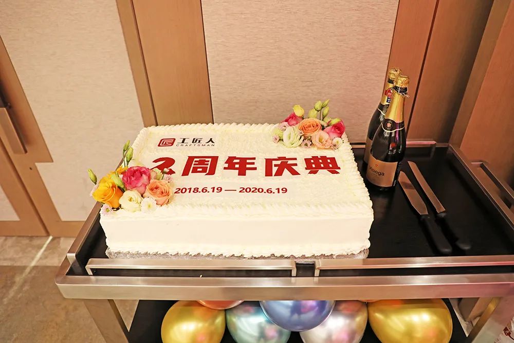 在这美好的时刻,礼仪人员为我们送上了象征幸福的生日蛋糕和香槟,我们最敬爱的傅总及其团队成员,为我们许下了一份美好的祝福,共同举杯祝愿工匠人生日快乐!
